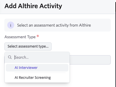 Once the integration is active, you can add AltHire AI assessments to any job’s interview plan.