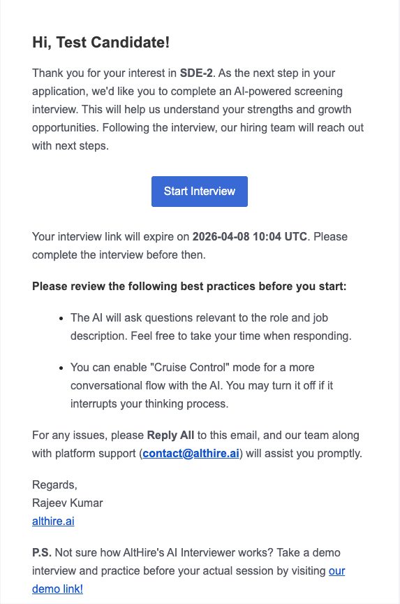 A shorter AI screening call is used for initial candidate filtering.