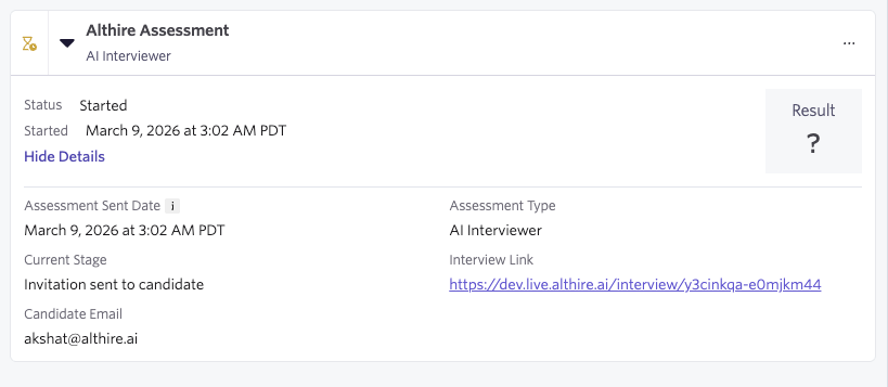 Once the interview is completed, results appear directly in Ashby.