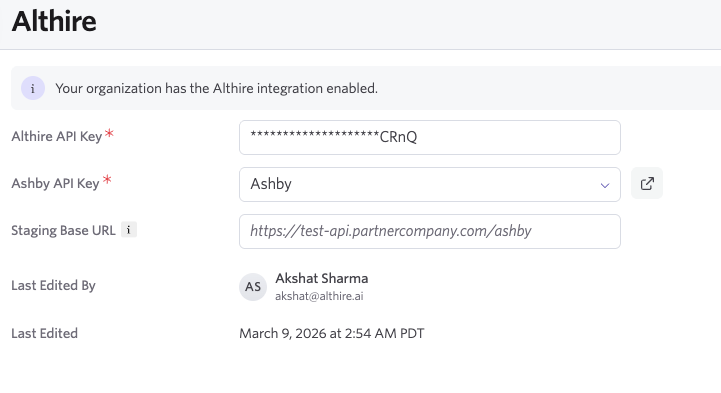 If you run into any issues or have questions about the integration, you can reach out to the AltHire team.